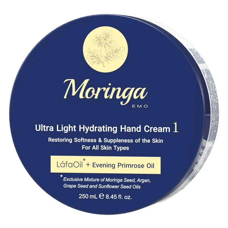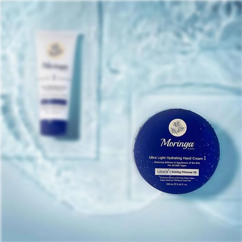 کرم دست فوق سبک و آبرسان مورینگا اِمو 1 با قدرت آبرسانی بالا و بافت بسیار سبک و ابریشمی، به سرعت جذب پوست شده و منجر به حفظ و تامین رطوبت پوست میشود. این محصول حاوی ترکیبات مغذی است که با کمک به حفظ رطوبت در لایههای پوست و بدون ایجاد حس چربی، لطافت و جوانی پوست دست را تامین میکند.
